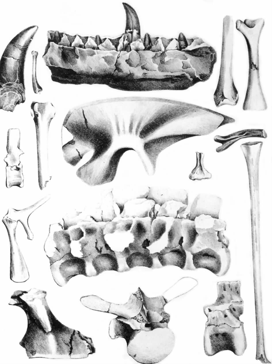 我们被极大的好奇心引向前方。这些史前动物的遗骨,在我们的脚下噼啪噼啪地响着,而这些稀少而又珍贵的遗物目前正受到很多城市博物馆的争夺。这些动物躺在这个壮观的白骨堆中,如果要把它们的骨骼完全复原,即使1000个居维叶也无能为力。