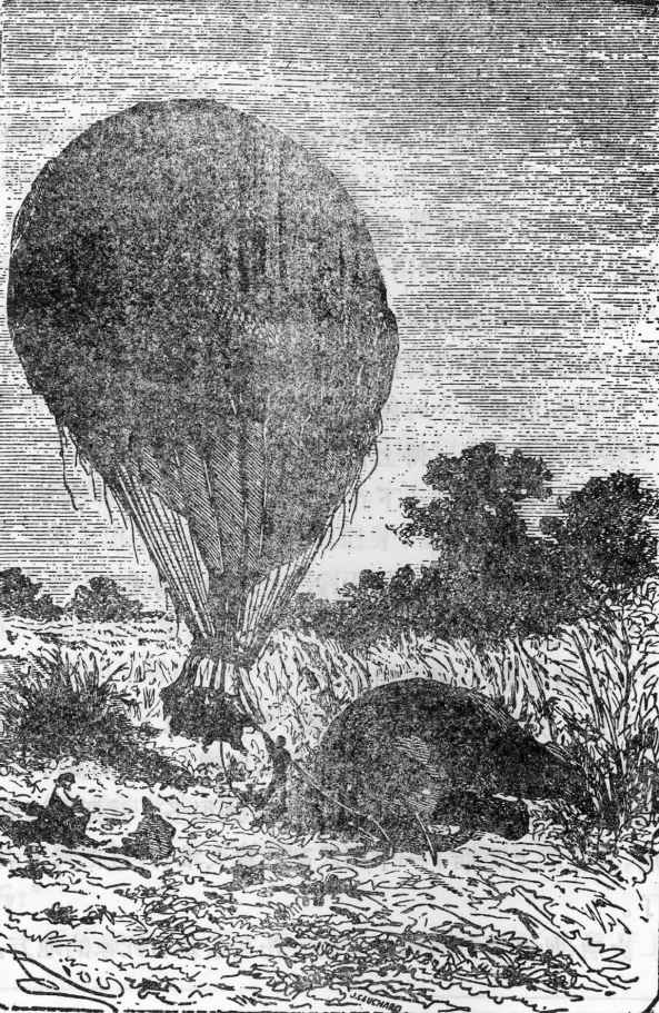 乔查看了一下铁锚,它仍牢牢地卡在大象那颗没有折断的象牙上。弗格森和肯尼迪也相继跳到地上。这时,只充满一半气体的气球在这头庞然大物的尸体上空不停摇摆着。