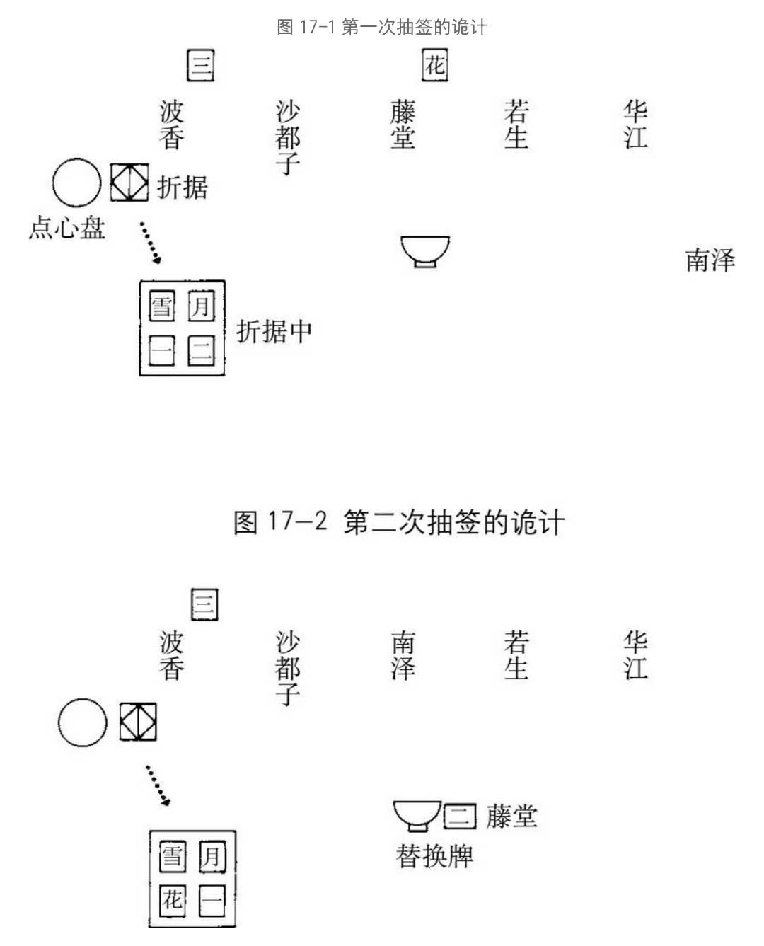 “从那时起骗局就开始了。藤堂抽到‘初花’也在计划之中。”加贺说道,“之前你告诉过我,茶会开始前,准备折据的人是波香。恐怕那时她就已经做了手脚。”