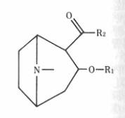 这个R1、R2的部份若各为H与OH,则是爱哥宁,若各为COC6H5与OCH3则是古柯硷,若为COCHOHC6H5和OCH3,就是神经毒性的古柯硷了。这些都存在于古柯硷的叶片中,属于亢奋性与麻痺性的强力物质,但排列第一的还是古柯硷。夏洛克,福尔摩斯喜欢饮用的古柯硷,其实是非常强烈的麻醉药物,幻觉性强烈,据说慢性中毒症状远较鸦片还严重。只要极微量就能发挥特殊药理作用的生物硷,即使是在药理学上也是非常有趣的研究对象。我目前正在从事相关的研究,因此经常会见到爱哥宁的结构式……至于爱哥宁酷似我们的关系,只要看看图示,就可一目了然。”