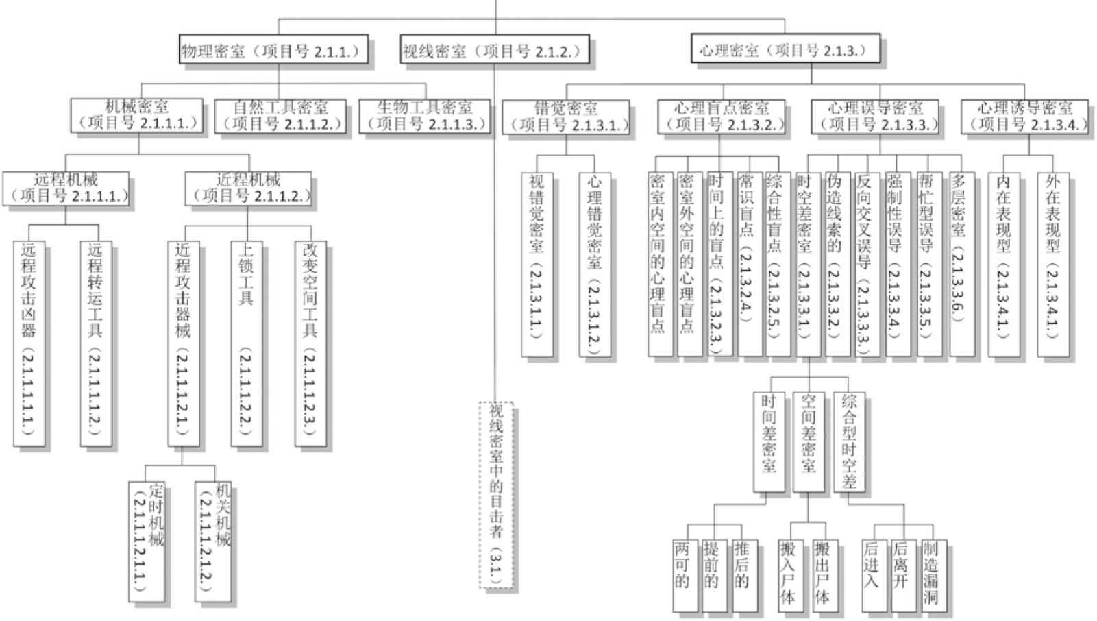 为了便于读者得到系统性的理解,我将密室杀人学科体系的树状图附于下页。