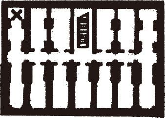 集中式存储(1)加上多米蒂拉地下墓穴(2),兰登心想。安德森在查看着那张蓝图。这一小块描绘次地下室的图样用一个X标出了SBB13的位置。兰登不禁觉得这张平面图就像是画的一个有十四个墓室的陵墓——七个墓室对七个墓室——其中一个被他们刚刚走过的楼梯取代。总共十三个。