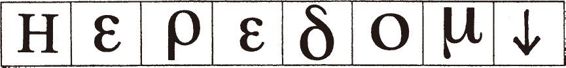 老电梯慢悠悠地升到第三层,迈拉克掏出那张纸片,上面画着依循富兰克林幻方密码排出的新符格。所有希腊字母都已聚到第一排,重组出一个单词,最后还有一个符号。