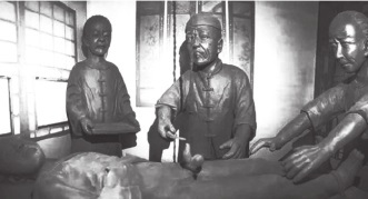 还原了清朝净身房阉割太监场景的雕像,拍摄于北京宦官文化陈列馆,这个展馆位于石景山区模式口大街西