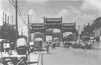 1920年代的东四牌楼,当年没城管,附近常年有流动的小吃摊。照片引自《北京城百年影像记》(故宫出版社),左下角就是一个疑似卖炒货的小摊