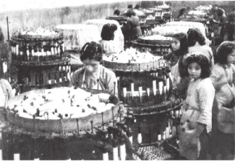 晚上,我让姗姗带我去了恒和厂。夜班6点开工,我和姗姗到恒和厂门口的时候,已经5点半,门口卖小吃的小贩已经支起了摊子吆喝。来上夜班的女工三三两两聚集在厂门口,有裹小脚的,有穿布鞋的,还有穿高跟鞋的,年轻女孩烫着卷发,留学生头,年纪大点的盘着头。她们都在议论下午从电厂烟囱跳下的女孩。
