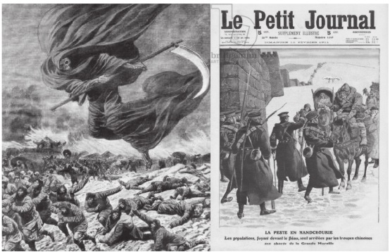 图为当时法国报纸《巴黎小日报》刊登的插画,介绍中国鼠疫,并明确指出是新型的“肺鼠疫”。1910年底爆发的鼠疫,最早由日俄医生和医院主管治疗,均判断为传统的腺鼠疫,也就是“黑死病”。伍连德到哈尔滨后,根据尸体症状和传染情况,推测是经呼吸传染的肺鼠疫。此推测后得到了实验验证。当时,除了伍连德,清廷还派去了时任北洋医学堂的首席教授,法国医师梅尼。梅尼医师曾在1908年参与过唐山的腺鼠疫防治,希望自己能取代伍连德,出任东三省防疫总医官,但遭到了东三省总督锡良的拒绝。到达哈尔滨后,梅尼去了俄国传染病院,却因未戴口罩感染了肺鼠疫,六天后死亡