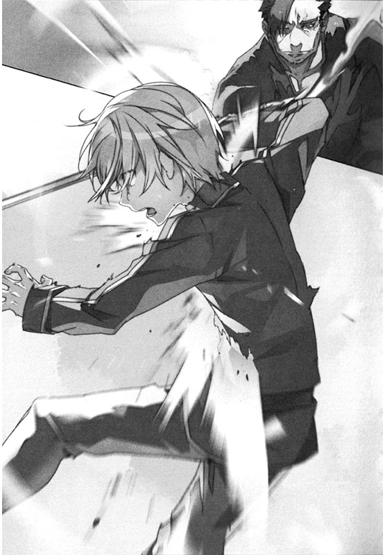 作好要分出听天由命的胜负的觉悟,优吉欧试着用左手触摸胸口。虽然仍有如裂开般的锐痛游走於上,不过伤口在一时之间即便活动也不会裂开。当然还远远称不上痊愈,天命估计减少了三成以上吧,不过还能站起来,也能够挥剑。