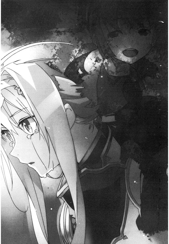 考虑到这一点的话,爱丽丝刚才说出这样的台词,可以说令人震惊。果然她的身上,有著其他人工Fluct Light没有的某种特征。在无言注视著她的我面前,仍然抱着小巧的手脚的黄金骑士,如同耳语一般将话继续了下去: