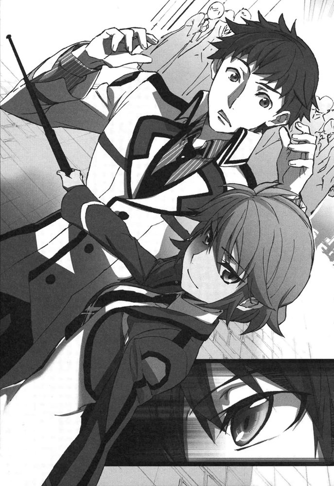 两人忘了目前还在眼前的「敌人」,面对面大声地拌嘴。使得达也、深雪以及所有人都愣在原地,不过最快回过神来的,是与他们对峙的深雪班上同学。