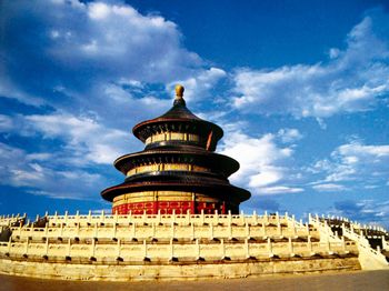 北京的天坛建于明代永乐年间,与紫禁城差不多同时完工(1420年)。永乐皇帝由南京迁都北京,他所做的一件重要的事,就是到天坛大祭天地。
