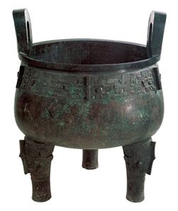 大盂鼎是中国青铜时代的代表性作品之一,今藏中国历史博物馆。它是西周康王时期的作品,距今大约有三千多年。这是一件祭祀所用的鼎器,鼎呈圆形,立耳,深腹,三足。鼎高一米多,体量巨大,体现出那个时代鼎器威严端庄、浑穆凝重的特点。