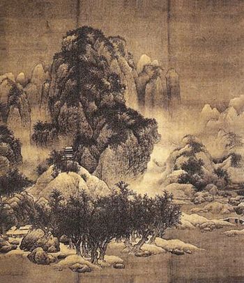 说到中国山水画,人们常常要提到“宋元山水境界”。大约自公元10世纪到14世纪这段时间里,水墨画进入发展的成熟期。画家们利用水墨技法,将中国画推入辉煌的发展阶段,尤其体现在山水画的创作上。这期间出现了很多水墨山水大师,如董源、巨然、范宽、李成、郭熙等。宋元山水传统,强调一片山水就是一片心灵境界,是一个重视呈现人心灵境界的传统。