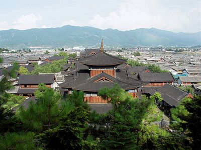 就在这个宁静神秘的理想天国不远处,在玉龙雪山脚下,有一座丽江古城。这座古城建于13世纪后半叶,六百多年过去了,如今基本保存完好。这里世世代代为多民族聚集地,以纳西族为主体,又有汉、藏、白、彝等民族。