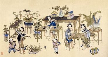 《红楼梦》插图(探春与宝琴下棋)清 孙温绘