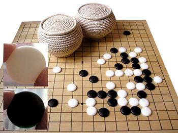 围棋是模仿天地的创造。围棋纵横有垂直交叉的19道平行线,361个点,这被说成是模仿一年的天时。盘面上标有几个小圆点,那是所谓“星位”,中间那个星位,叫“天元”,这是模仿星象。