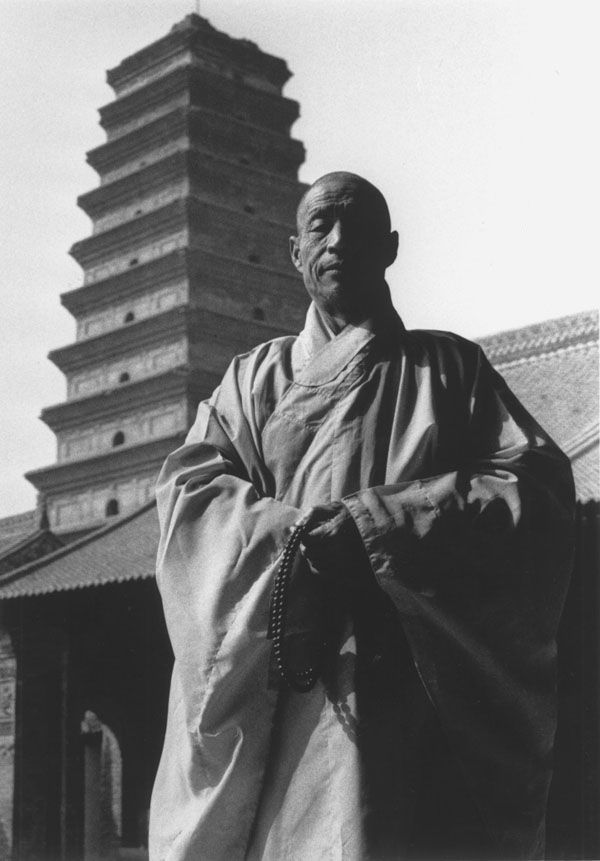 在里面,我遇到了香积寺六十八岁的住持续洞。他领着我四处参观,并且谈到了香积寺近期的历史。1960年,当他初次来这儿的时候,这里只有一座大殿和三座舍利塔仍然屹立着。这三座舍利塔里面是善导和两位后期净土宗大师的舍利。那时候,寺里只剩下一个老和尚,他们两个人就一起住在紧靠大殿的一间小茅屋里。1963年左右,寺里已经有了十九位和尚。后来,20世纪60年代后期,红卫兵来了,把其中的一座舍利塔砸成了瓦砾,并且强迫和尚们参加当地的生产小组。续洞千方百计保住了大殿和剩下的两座塔。