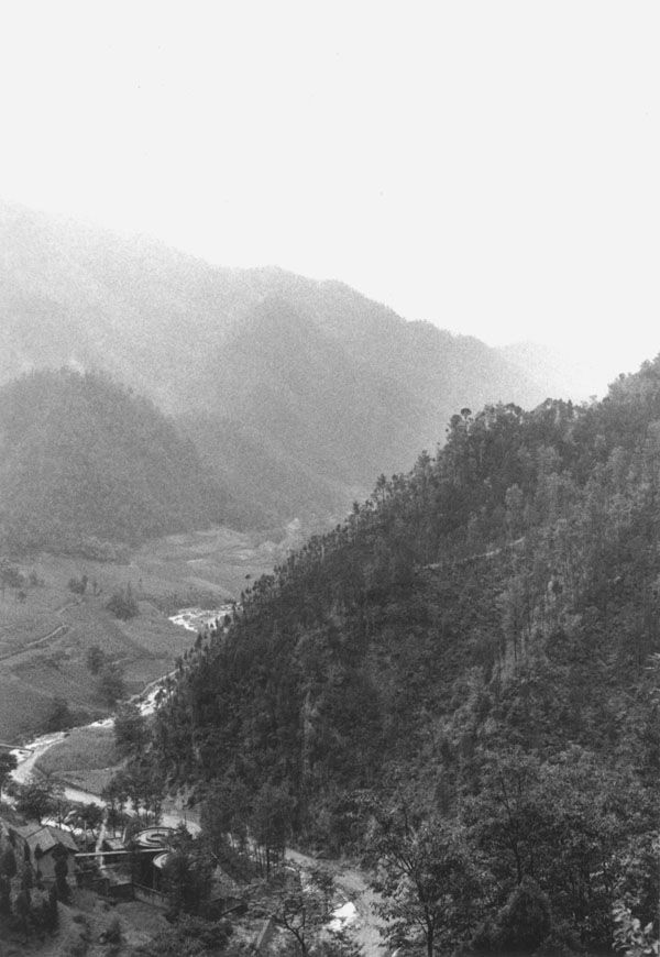 我在香港买的一本书上说,在王维昔日的隐居地,他手植的一棵银杏树仍然活得很好。一个阴雨天,没有什么其他事情好干的,我们决定去看看王维的树。我们雇了一辆车,沿着灞河向东南开去。行驶五十公里后,我们在蓝田掉头向南,然后沿着辋川穿过终南山的一个山口。昔日当王维去辋川别墅的时候,他要在这里下车,然后剩下的路都坐船。过去这里没有山路,更不要说大路了。直到20世纪50年代,政府才在山谷的东部边缘炸出了一条路。