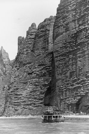我与二十位同行客,乘着游船又一次欣赏了黄河美景。和三门峡水库一样,刘家峡水库的水也十分清澈。大约过了一个半小时,游船驶入一条峡谷,水突然变成了棕黄色。船长告诉我们,再转两道弯,就到炳灵寺石窟了。