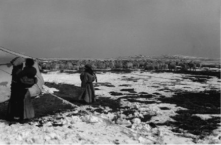 我们行驶到“盆底”,开始穿越盆地。这时雪开始融化,到处都是小水洼。前面是一条小溪,司机加大油门一下冲了过去。接着又是一条小溪,司机又如法炮制。这次彻底悲剧了!小溪那边的土并没有冻住,结果吉普的轮子陷进泥淖里差不多有一英尺深。我们折腾了一个小时,试图将轮子拔出来,但都无济于事。车轮陷进去,引擎也发动不起来了。我们困死在这里,眼看到手的胜利被一条小溪给毁了。