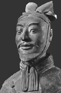 至于秦始皇的陵墓,也就是兵马俑的拱卫之所,还没有进行挖掘。据说政府尚不具备保护陵墓内的文物不受损害的能力。其实,光是兵马俑就够他们忙活的了,我们游览时挖掘工作仍在进行中。兵马俑虽然很壮观,看了半小时也足够了。我们取回挎包,坐车回到临潼,再倒车回到西安。我们临上车时,发现兵马俑展厅的后面还有一幢房子,墙上挂着个大牌子:相同的工艺,相同的原料,相同的质量,相同的价格制作兵马俑。两千年前的原始砖窑以同样陶土和技术为您复制具有同样的面部表情的兵马俑。这段话又一次提醒我和芬恩,我们已经来到了丝绸之路,这里所有的东西都可以出售,甚至包括世界奇观。