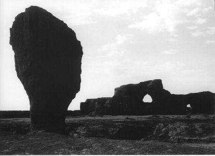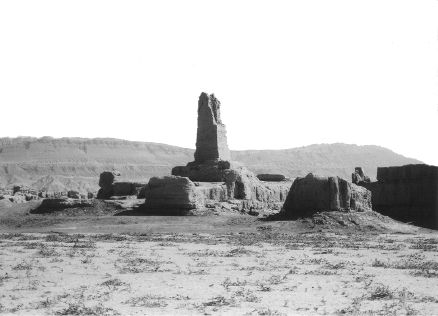 但有一处遗迹截然不同,那就是位于古城西南角的一座佛殿。大殿保存完好。内部有一个巨大的中心柱,信徒通常绕着这个柱子转圈诵经。在佛教发展初期,佛塔是唯一的建筑形式,即在佛祖及其显赫弟子的舍利上面建起土冢,后期改为砖塔。朝拜者通常围着佛塔绕圈,来祭拜这些舍利,因此又增加了砖砌的走道和屋顶,这样朝拜者便可风雨无阻地来此祭拜。后来,佛塔本身演化成一根巨大的中心柱,基座的佛龛里供奉着佛祖的雕像。最终,佛教传入中国后不久,柱子被祭坛所取代,上面供奉着越建越大的佛像。同时,走道几乎完全取消。敦煌洞窟里面的佛殿就暗示了这种演变过程,但是在高昌,中心柱和走道的作用要明显得多。我和芬恩在故城西南角的佛殿中绕着柱子走时,不禁感觉我们是在沿着玄奘的足迹行走。