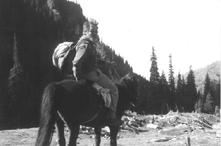 我们一路又是骑马又是步行,花两个半小时才来到这里,所以不能急着离开。沿丝绸之路一路走来,此时在雪线之下,坐在湍急的溪流边,四周簇拥着冷杉和青青牧草,真让我们喜出望外。就这样过了一个小时,向导提醒我们,如果再耽搁下去,恐怕大家就要摸黑骑马回家了。我们赶紧上马,沿小路回返下山。很显然,马儿之间正在进行某种竞赛,向导不时地扬起鞭子或者发出低沉的哨声让马儿回到队伍中来。几匹马真是好样的!它们一路涉过乱石遍布的溪流,悠闲地跨过圆木搭建的小桥,似乎“磕磕绊绊”这个词从来就不存在似的。我还从来没有见过步履如此稳健的动物呢。马是哈萨克人最重要的财产,经过几年驯养后,它们和主人之间会培养出不同寻常的亲密关系。哈萨克人去世后,任何人都不许再骑他的马。