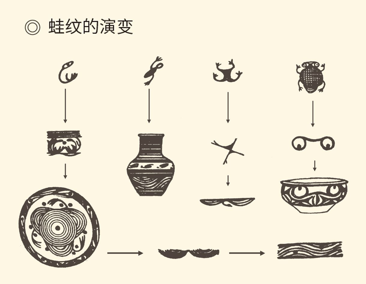 实际上,从蝌蚪到幼虫,再到成形的蛙,在彩陶纹饰中应有尽有。这当然绝非偶然。
