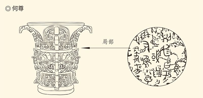 尊内底铸有12行、122字铭文,其中“宅兹中国”为“中国”一词最早的文字记载,记述的是成王继承武王遗志,营建东都成周之事。