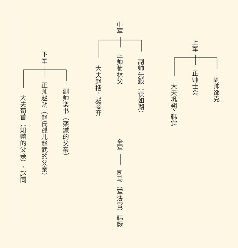 我们知道,晋国号为三军,实为六军。因为三军的统帅和副帅,都各有一支部队,每军也各有两个大夫,中军统帅则为元帅。也就是说,郑都被围时,晋国六军齐发,在元帅荀林父的率领下前来救援。