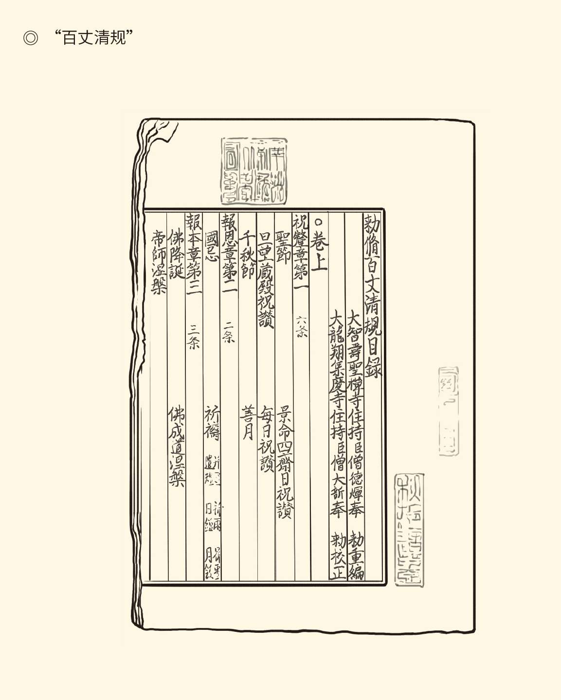 百丈怀海所制定的“禅门规式”,又称“古清规”,其原貌已无从得见。现在流传的《敕修百丈清规》是怀海禅师入灭五百多年后,由元朝顺帝敕命重新编撰的。