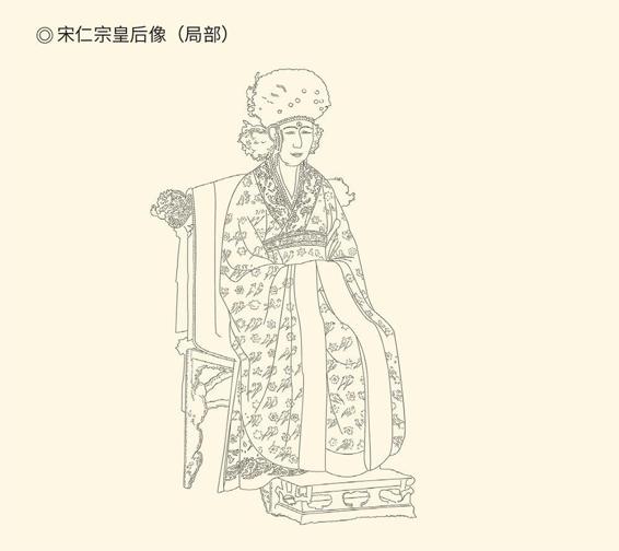 据沈从文《中国古代服饰研究》。此为宋仁宗曹皇后像,神宗时,曹皇后被尊为太皇太后。该图为绢本设色,现藏于台北故宫博物院。