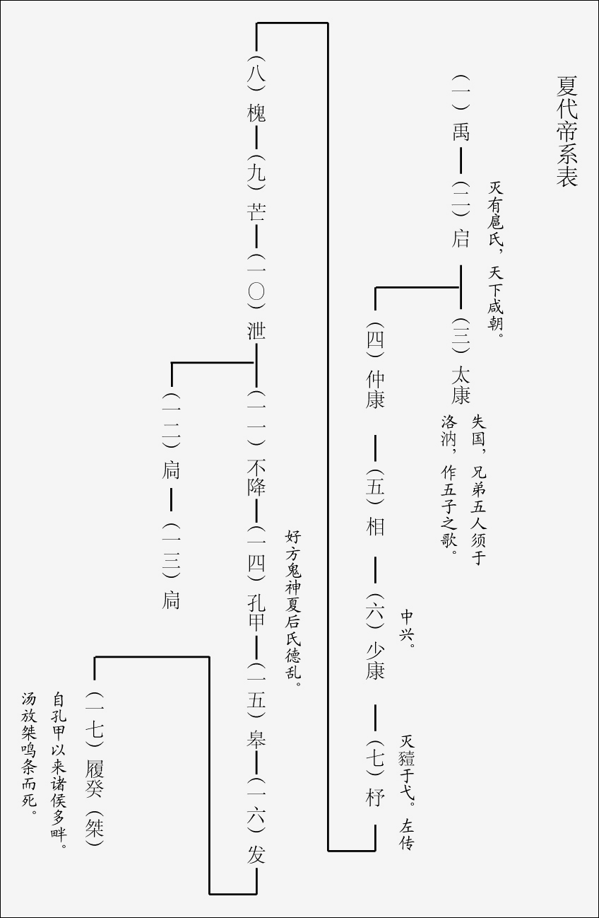 夏代帝王系表: