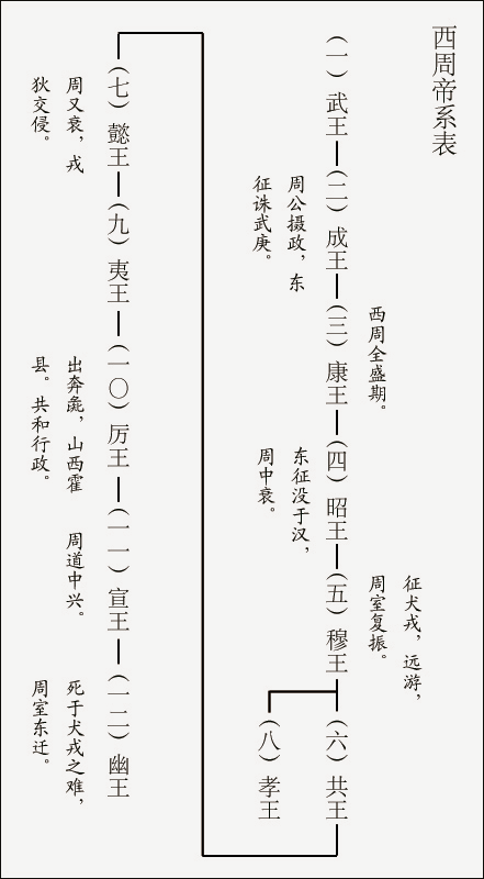 西周史有诗、书可征,史料较殷更备。然史记尚不详其年历,其帝王世次如左图。