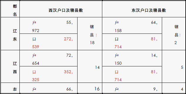 郡名 西汉户口及辖县数 东汉户口及辖县数