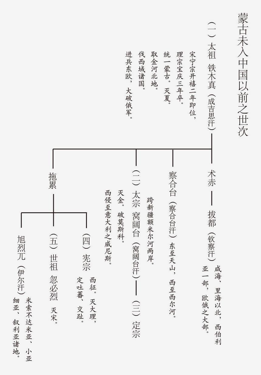 自成吉思汗即位,至忽必烈灭宋,凡历五世,七十四年。