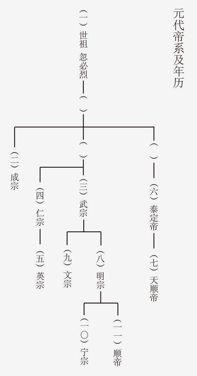 元代入主中国,凡十一主,一百零九年。【自灭宋凡九十九年。除世祖、顺帝外,中间九主共仅三十九年。】