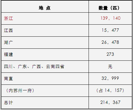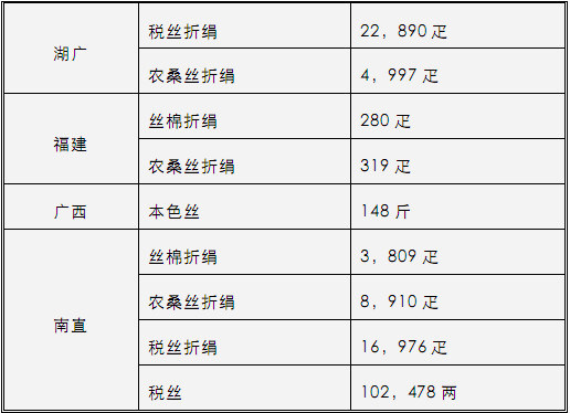 按:此表北方各省折绢数乃过于南方,然折绢未必实纳。正统八年,令各处不出蚕丝处所,每绢一疋,折银五钱,解京支用。盖唐以前北方输绢,至是相承,仅为一种名色而已。如单论丝两,则南北几至八一之比。【弘治十五年数与此大同。惟四川有荒丝633斤,而此无之。】