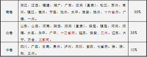 洪熙元年,定南卷取十之六,北卷取十之四。后复以百名为率,南北各退五卷为中卷,然中卷其实即南卷也。又北卷中顺天额亦多南人,则北卷之见绌多矣。
