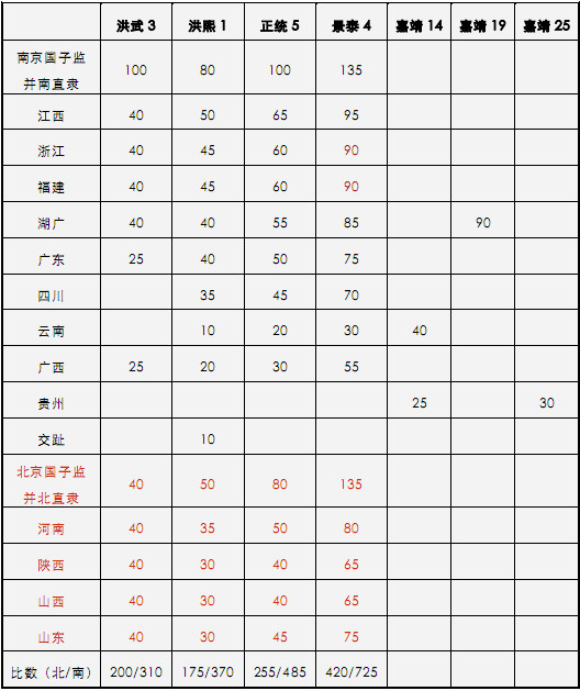 明代亦定南北取士额。