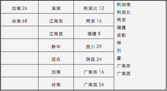 社会南北文化经济之升降,还可以政治划分区域的大小繁简来看。兹将唐、宋分道列一简表如下: