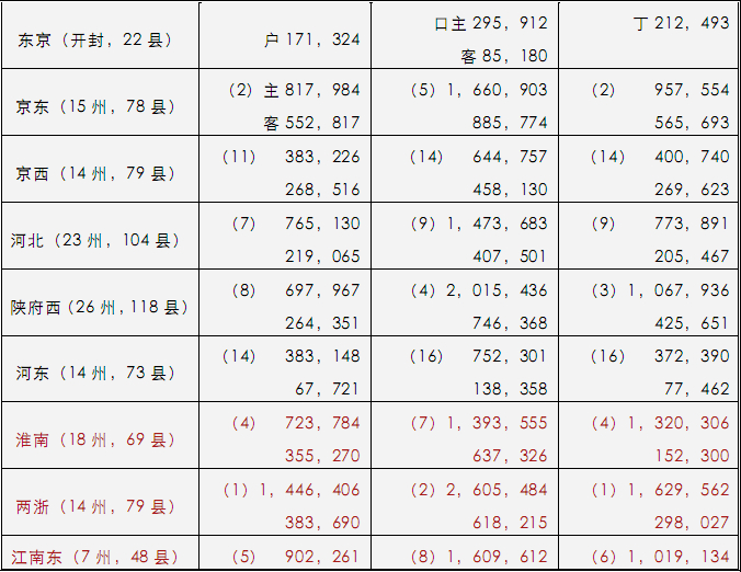 范仲淹《十事疏》谓:“唐会昌中,河南府有户一十九万四千七百余户,置二十县。今河南府主、客户七万五千九百余户,仍置十九县。巩县七百户,偃师一千一百户,逐县三等,而堪役者不过百家。请依后汉故事,遣使先往西京,并省诸邑为十县。所废之邑,并改为镇。候西京并省,则行于大名府。”据是言之,北方政治区域,若以实际户口衡之,在北宋盛时,其可省并者已多矣。又按:以主、客户比数而言,诸路情形大率略似。客户俱当主户三之一乃至半数以上。独两浙、江南东及成都三路不然,客户比数,只当主户之四之一乃至五之一。又可见其经济状况之独优矣。【北方河东一路,客户比数少。此恐有其特为贫瘠之故,不得与南方三路比。】
