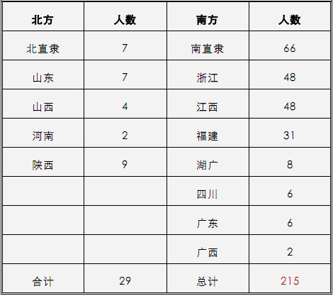 明宰辅189人,【此据《明史•宰辅年表》计】南方占了三分之二强。【明江、淮以北,鼎甲甚不易得,盖以科第影响及于仕宦。】