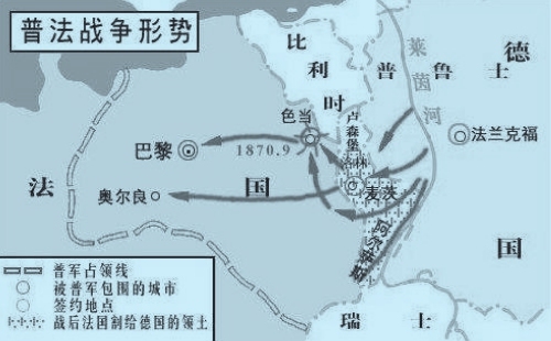 那场战争使得法兰西第二帝国被推翻,第三共和国成立,而普鲁士借着这场战争完成了对大小联邦的统一,成立了德意志帝国。