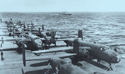 当以“大黄蜂号”为首的美国第18机动舰队行进到夏威夷北部海域的时候,以“企业号”航母为首的第16机动舰队加入了队伍,因为“企业号”上的舰载机,要随时准备为“大黄蜂号”护航——虽然“企业号”上的水手根本不知道“大黄蜂号”上装那么多轰炸机是要运送到哪里——他们觉得不可能有那么大的轰炸机能从航母上起飞,更让他们困惑的是,当时美国在太平洋上已经几乎没有军事基地了。