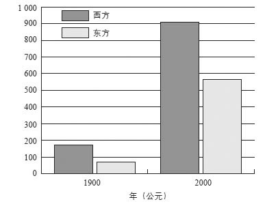 50年前,毛泽东曾经说过:“……不是东风压倒西风,就是西风压倒东风。”20世纪50年代,东方就在西方羽翼的控制下,只是在美国和苏联之间划分成了不同的派别而已。但是到了2000年,毛泽东的话是对的。西方的社会发展远在东方之前——其社会发展指数超过东方300分——比任何时候的差距都大。不过,西方和东方分值的比例在1900年达到2.4∶1,而在2000年,仅为1.6∶1。20世纪不仅是西方时代发展到极致的时期,也是这一时代走向终结的开始。