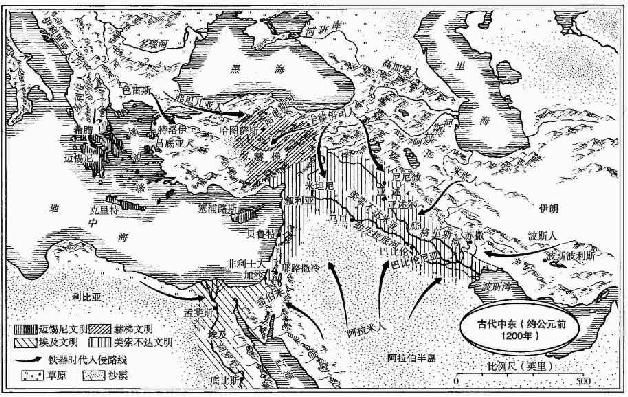 随着经济专业化分工的优势就此深入中东社会底层,文明首次全面而牢固地扎根了。再也没有任何一个重要民族能完全置身于交流和互相依赖的网络之外。每个人都从专业化分工中得到切实的益处,即使最贫穷的农民,如果不购买其他东西,也开始要去市场购买基本农具。这也许是铁器时代最伟大的成就。最初也许是由非同寻常的地理和社会环境造就的社会分化和专业化分工,变成了中东农业社会的永久组成部分。历经大约2000年,文明社会的复杂性和专业化分工最终变成了地区特色。
