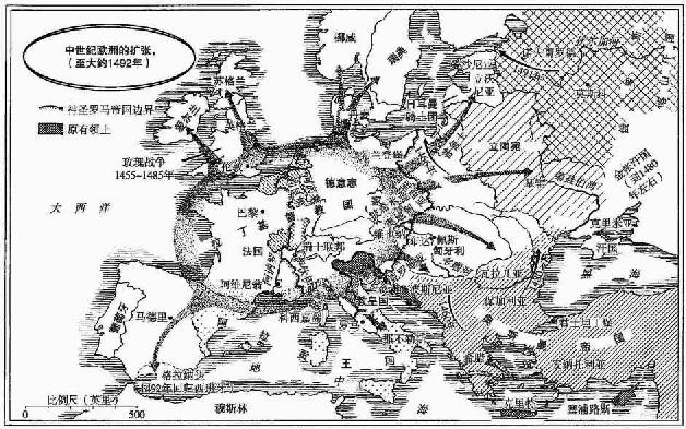 拉丁基督教世界最重要的前哨是南部和东部,因为那里的穆斯林和拜占庭为欧洲文明贡献了比蛮族人的胆量和落后更多的东西。诺曼人对南部意大利和西西里的征服(1059~1091年)把以前的拜占庭领土置于教皇和“法兰克人”的统治之下[1]。基督教徒在西班牙和葡萄牙的长期推进也逐渐逼退了穆斯林的边界,直到1492年摩尔人在直布罗陀海峡欧洲一边的最后一个据点格拉纳达被收复。这些征服比壮观的十字军开赴圣地、爱琴海、北非和埃及要持久得多,尽管十字军导致欧洲第一批海外帝国的建立。但是,这些帝国在许多世纪里经历了盛衰变化,直到其中最后一个威尼斯共和国于1797年随着威尼斯被拿破仑·波拿巴的征服而灭亡为止。