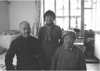 王春茂、严秀芹夫妇与徒弟姚安(定宜庄摄于2002年)