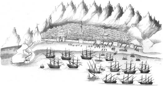 阿尔布开克知道兵贵神速,必须在周边沙漠的援兵抵达亚丁之前将其攻下。更重要的是,由于亚丁气候严酷,他的机遇窗口期很短。他们已经遇到了红海最关键的战略问题:“在我看来,由于缺水,如果我们占领了城市却没有控制通往城后山区的大门,我们的全部努力就白费了,因为到时我们将不得不从船上获得给养。”没有辩论,没有犹豫,有的只是一个简单的计划,从事后来看,他承认这个计划差不多等于是没有计划。“我们唯一的计划就是枕戈达旦,以精神和行动为陛下效劳。我们达成一致,从两个地方发动进攻,并将部队分为三路。”除此之外,由于复活节的吉利时节,他们坚信“天主一定会为我们提供一切”。葡萄牙贵族及其武士和训练有素的民兵之间存在竞争,所以必须把这两拨人分开。两个群体都领到了梯子。“我们带来了撞城槌、撬棍、铁铲和锹,并用火药炸毁了一段城墙。”黎明前两个小时,军号响起。士兵们登上小船,划到岸边。“黎明时分的城市,以及旭日东升的景象,真是令人心中油然而生敬畏。”总督的秘书之一科雷亚如此记载道。他不仅留下了对此役的记载,还绘制了亚丁地图,“它沿着海岸延伸,形似一个弯曲的海湾,小船只有在涨潮时才能接近,城墙高耸,令人生畏,有许多圆形塔楼”。[4]